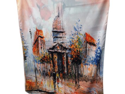 Oboustranná hedvábná šála s obrazem inspirovaným pařížskou baziliku Sacre Coeur, která se nachází na Montmartru. Z druhé strany je abstraktní obraz s motivem květů. Oba obrazy...