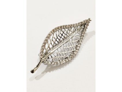 Krásná brož v podobě listu vykládaného zirkony po okraji listu.Zapínání klasické - na špendlík. Velikost: cca 3,5 cm Materiál: nerezová ocel, zirkony