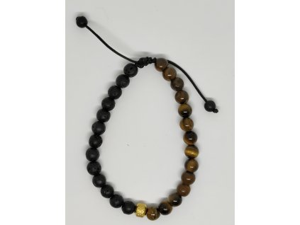 Unisexový náramek s lávovými kameny a kameny barvě tygřího oka. Náramek není na gumičce, ale je na stahovacím provázku.