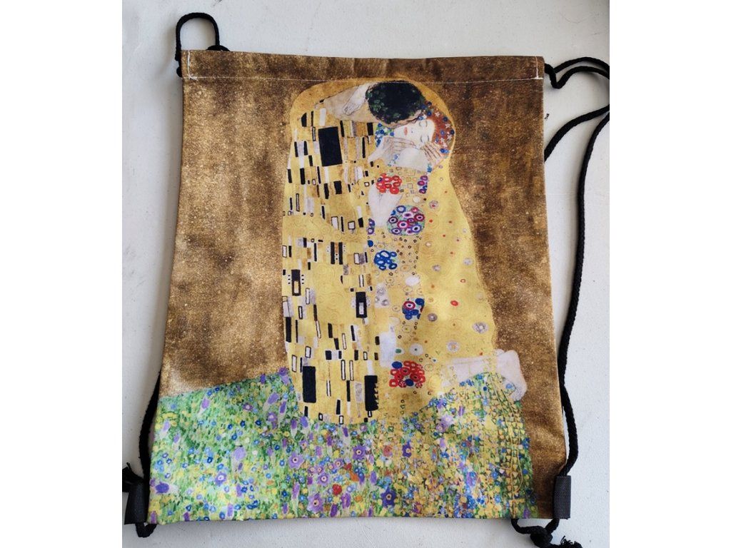 Jednoduchý městský batoh s motivem Gustava Klimta - Polibek.