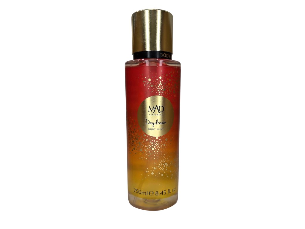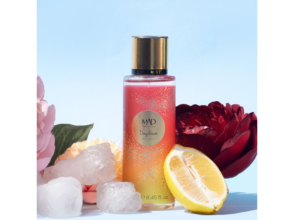 Daydream je tělová mlha, která vás zahalí do snového závoje svěžesti a jemného smyslného tepla. V úvodu rozkvétá šťavnatý citron, sladký ananas a sametová broskev, jejichž tóny přinášejí okamžitý pocit radosti a lehkosti. Ve středních tónech probleskuje exotický kokos a krémové mléko, které se mísí s něžností konvalinky, vytvářejíce harmonický a jemně opojný efekt. Základ vůně tvoří smyslné pižmo, hřejivé santalové dřevo a sladká vanilka, které dodávají mlze hloubku a dlouhotrvající kouzlo.