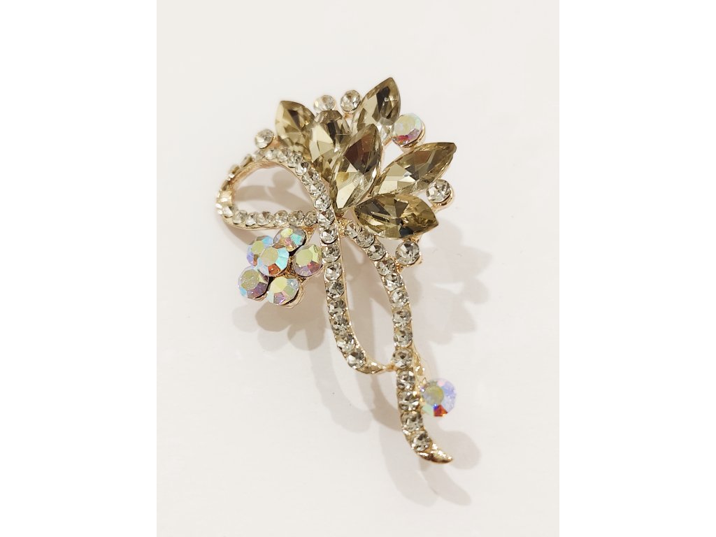 Krásná brož v podobě velké květiny vykládané zirkony.