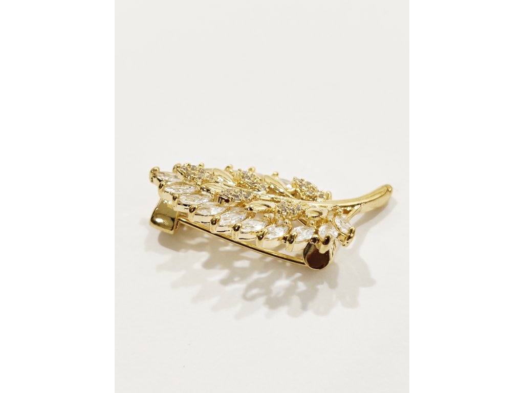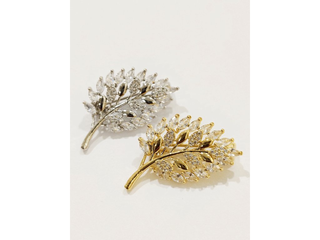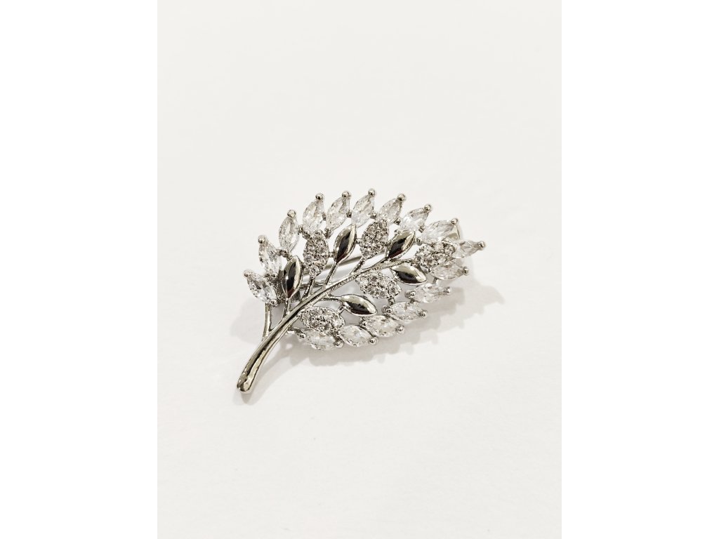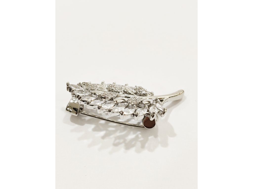 Krásná brož v podobě listu vykládaného zirkony.Zapínání klasické - na špendlík.