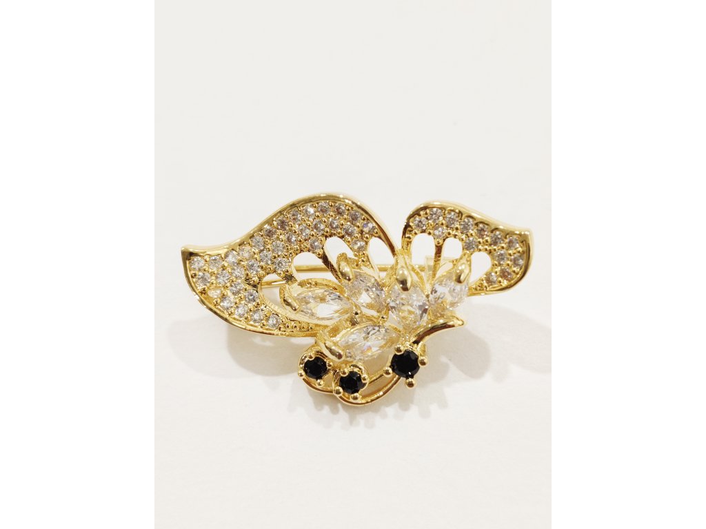 Krásná brož v podobě malého motýlka vykládaného zirkony.