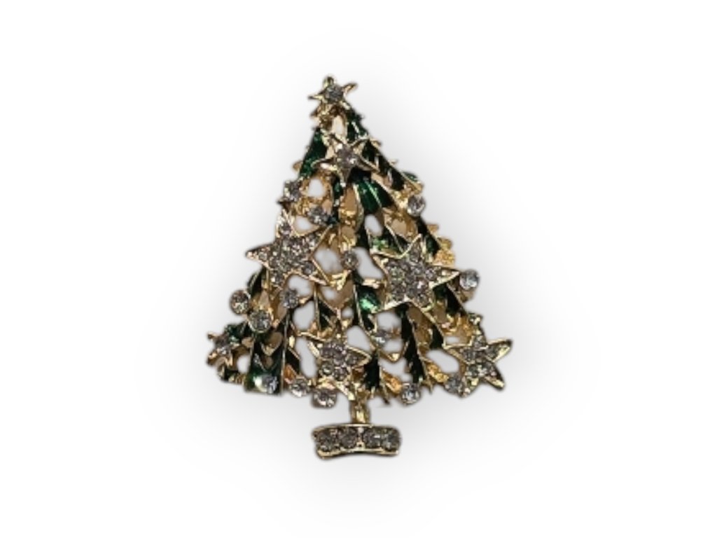 Krásná brož v podobě ozdobeného vánočního stromku.Zapínání klasické - na špendlík.