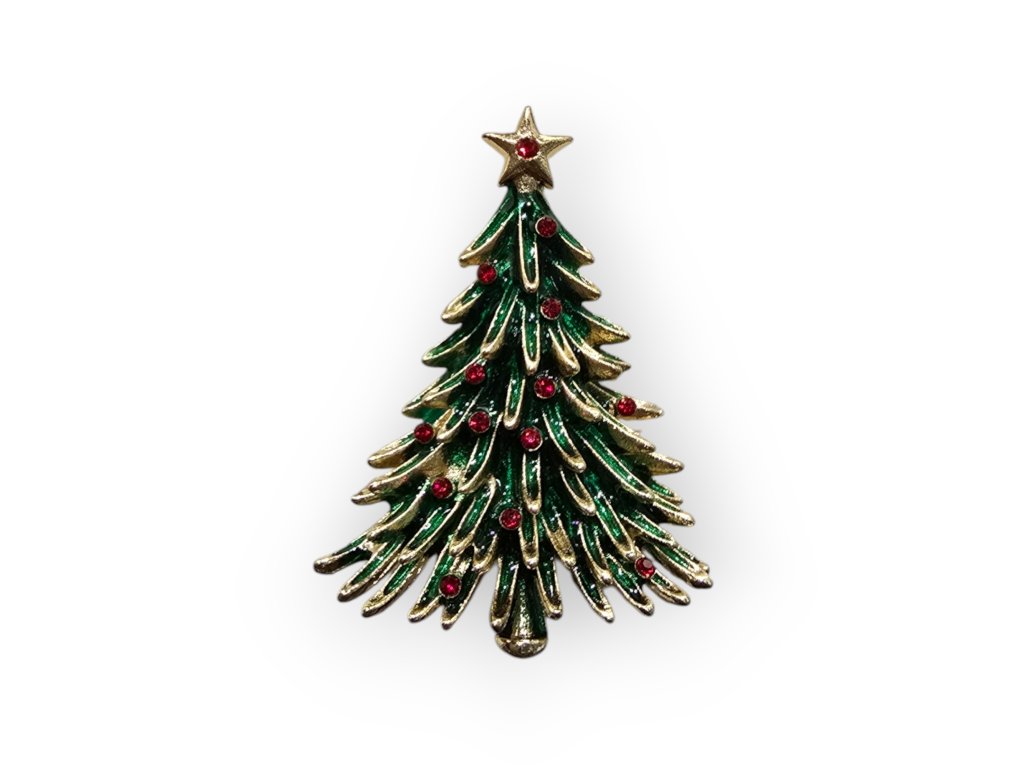 Krásná brož v podobě ozdobeného vánočního stromku.Zapínání klasické - na špendlík.