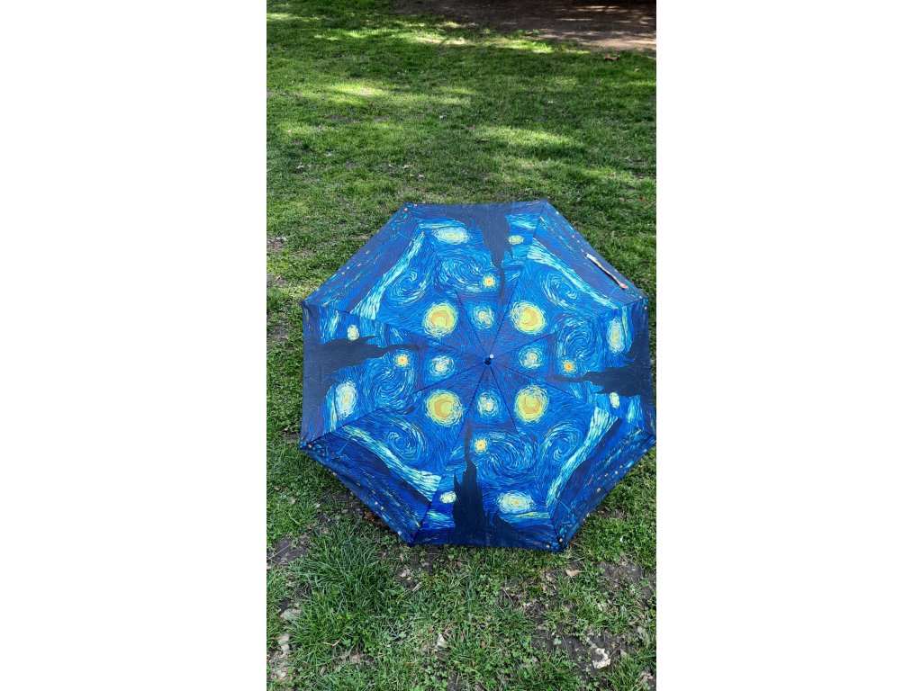 Pevný, vystřelovací deštník s motivem od Vincenta van Gogha - Hvězdná noc.