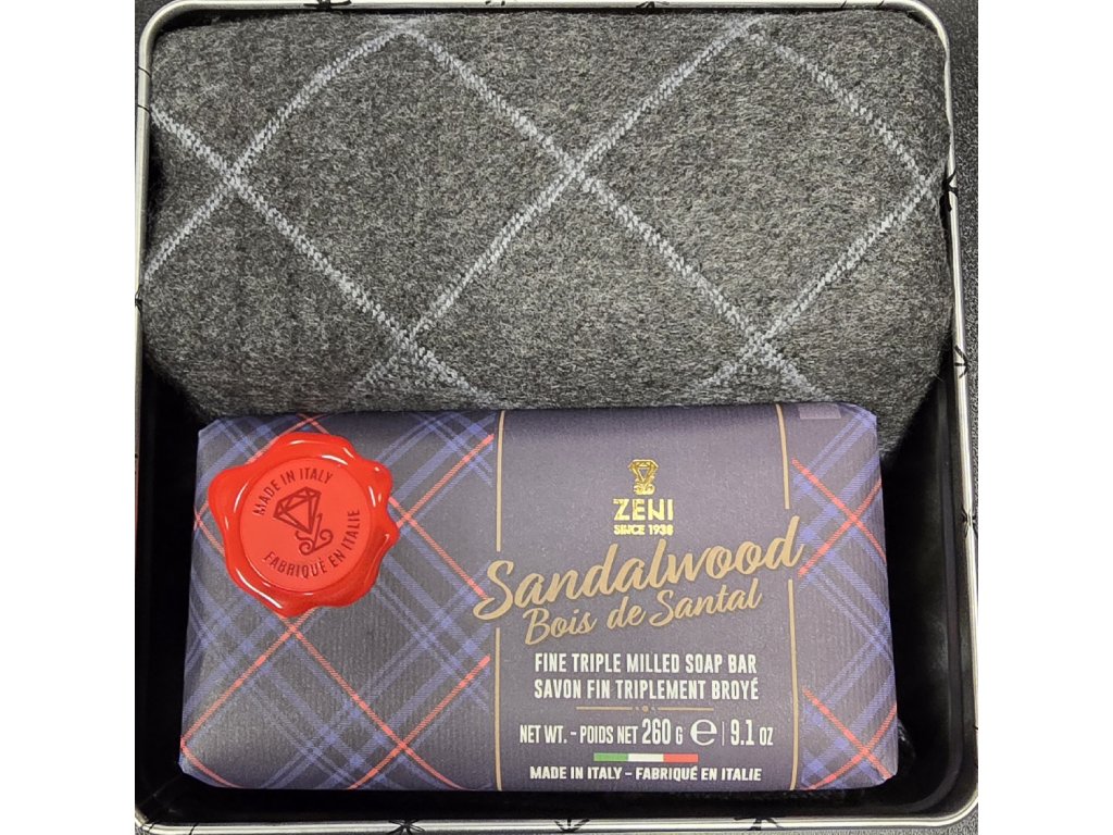 Dárková sada pro muže obsahující elegantní šálu a kvalitní italské mýdlo pro pány.