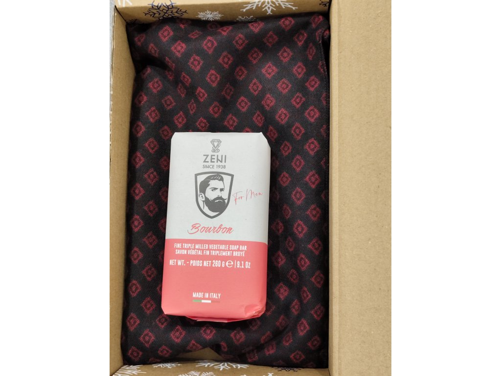 Dárková sada pro muže obsahující elegantní šálu a kvalitní italské mýdlo pro pány.