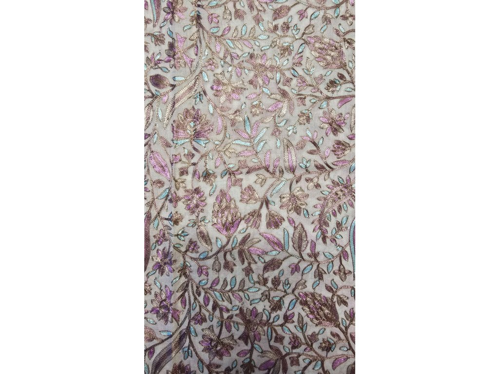 Extra jemná kašmírová šála s vyšívanými vzory - krémová bílá 6