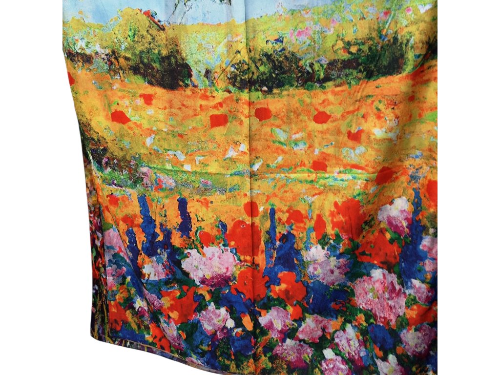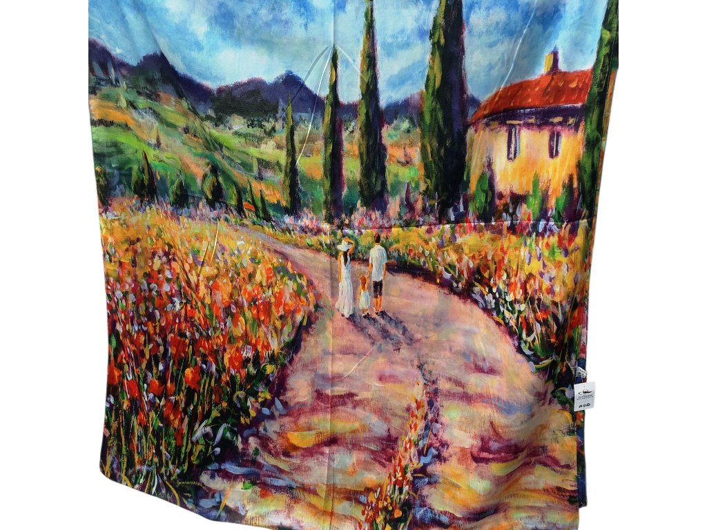 Oboustranná hedvábná šála s obrazem cesty vedoucí mezi makovými poli. Z druhé strany je obraz venkova opět s makovým polem. Oba autoři jsou neznámí.