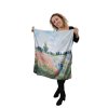 Oboustranná hedvábná šála s obrazem Clauda Moneta - Procházka. Z druhé strany je obraz od George Dunlop Leslieho - Mladá zahradnice.
