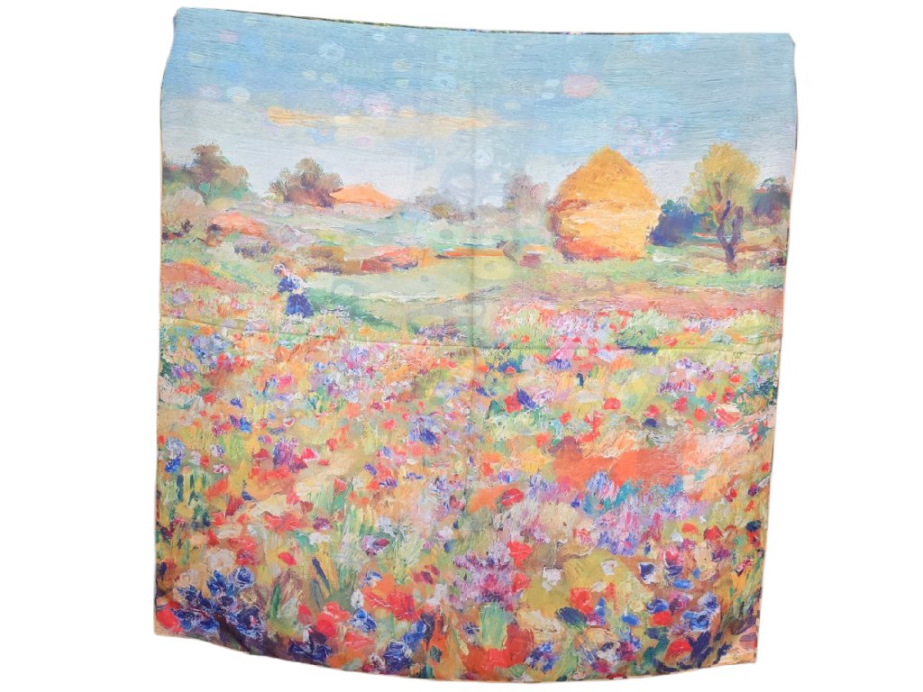 Oboustranný hedvábný šátek s obrazem od Gustava Klimta - Strom života. Z druhé strany šátku je obraz od Marcela Dyfa - Makové pole.