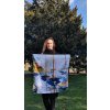 Oboustranný hedvábný šátek s obrazem Moneta - Lodě na Séně v Petit-Gennevilliers. Z druhé strany je obraz od Marilyn Simandle - Promenáda podél jezera.