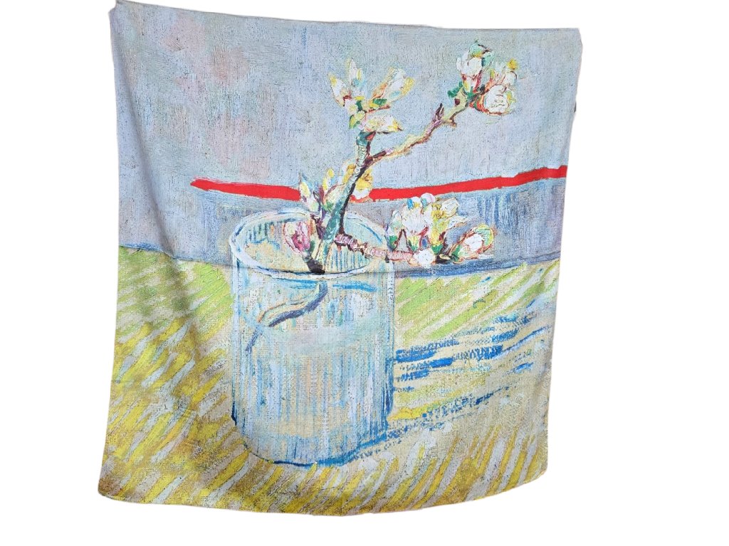Oboustranný hedvábný šátek s obrazy od Vincenta van Gogha - Váza s gladiolami a čínskými astrami a z druhé strany je obraz Větvička mandloně.