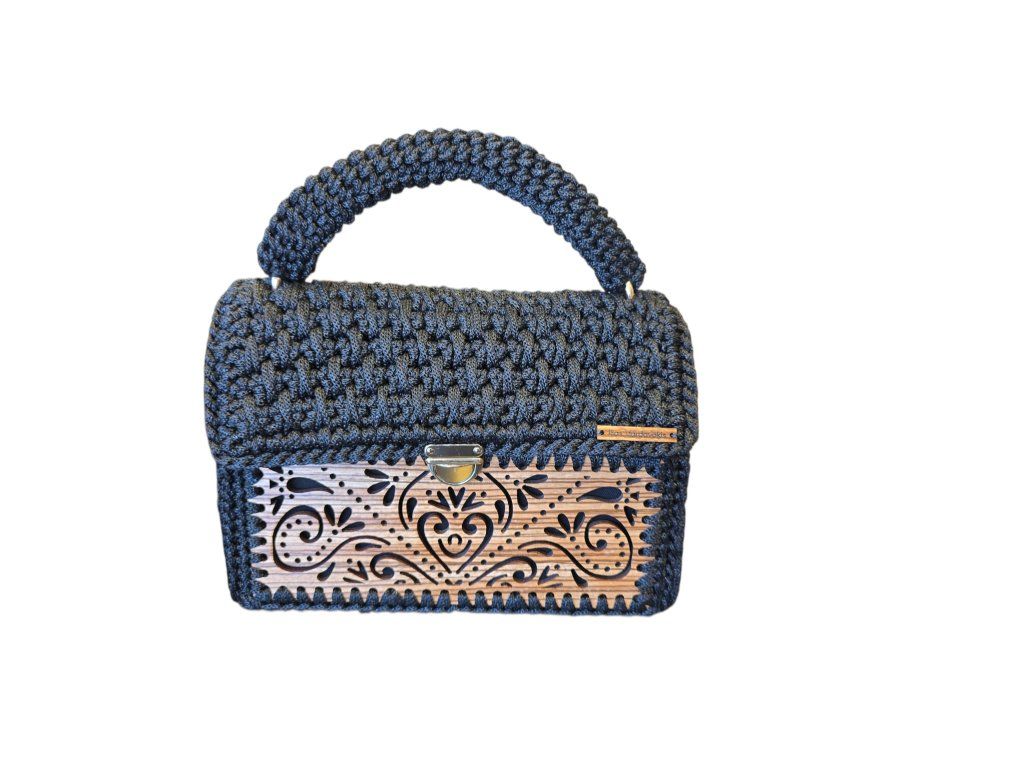 Kabelka háčkovaná se dřevem s klopou