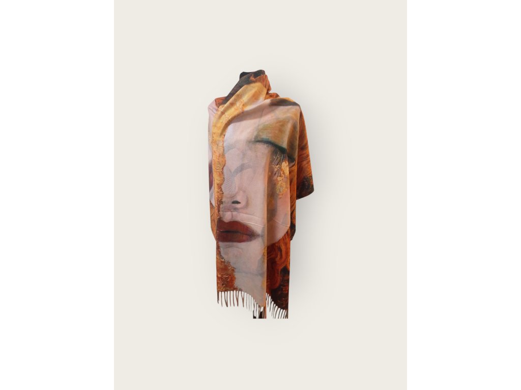 Z druhé strany šály je obraz Zlaté slzy od Gustava Klimta.