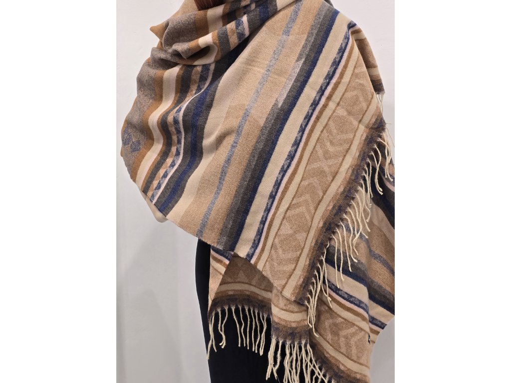 Kašmírová šála z vlny nejvyšší jakosti. Strojově utkaná v manufaktuře v oblasti Gandakí v Nepálu, což zajišťuje dokonalou konzistenci tkaniny a precizní zpracování každého detailu.