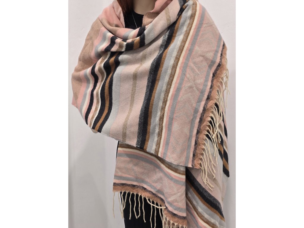 Kašmírová šála s nepálskými vzory - růžová