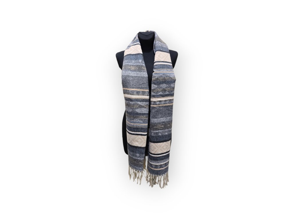 Kašmírová šála z vlny nejvyšší jakosti. Strojově utkaná v manufaktuře v oblasti Gandakí v Nepálu, což zajišťuje dokonalou konzistenci tkaniny a precizní zpracování každého detailu.