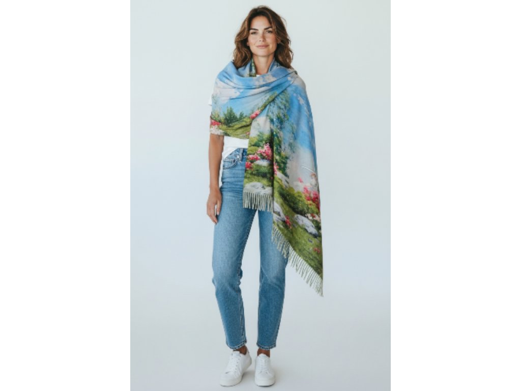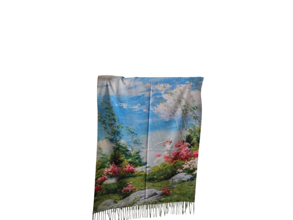 Kašmírová šála - Světlá zahrada/abstrakce