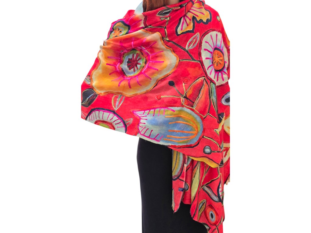 Výrazné barevné kombinace a květinové vzory dodávají šále jedinečný charakter a šmrnc, takže se stává nepřehlédnutelným doplňkem pro každou příležitost.