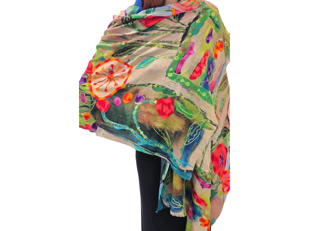 Lehká barevná kašmírová šála s vyšívanými vzory 9