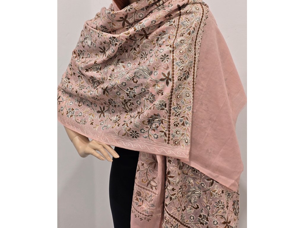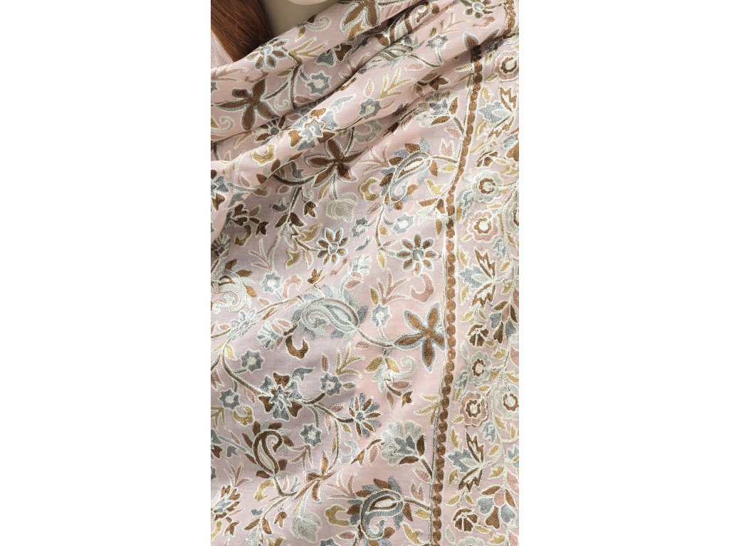 Lehká kašmírová šála s vyšívanými vzory - růžová