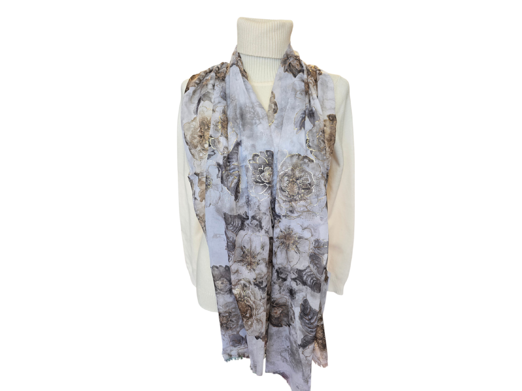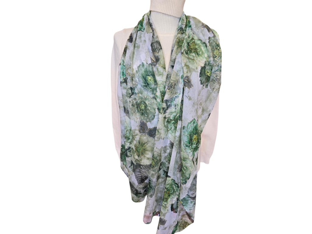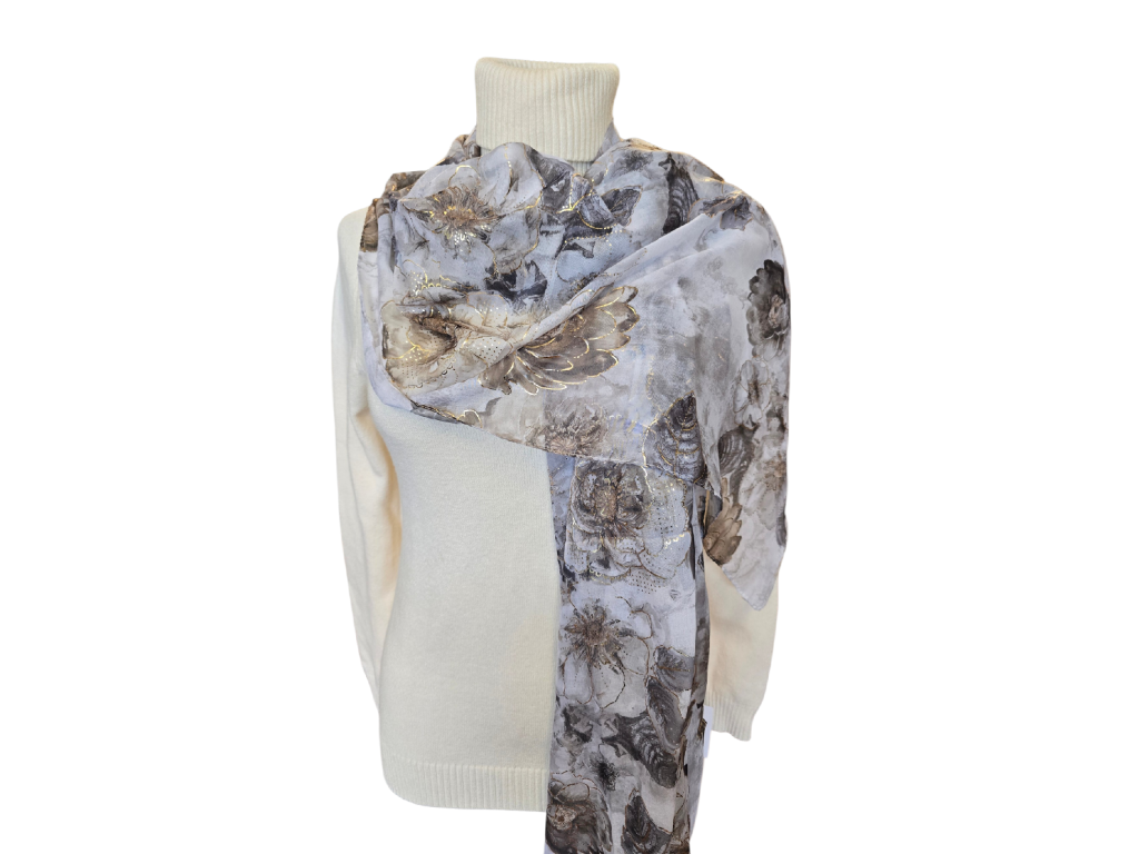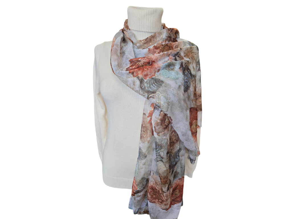 Jednostranná lehká šála s motivem letních květů v několika barevných variantách. Vdechněte svému letnímu šatníku svěžest a rozmanitost s naší lehkou šálou s květinovým motivem.