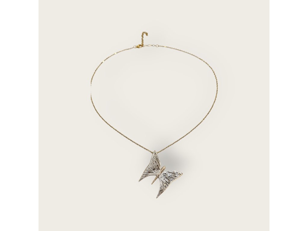 Tento výjimečný ručně vyráběný náhrdelník ve tvaru motýla, inspirovaný přírodou ostrova Aegina, je dokonalou kombinací elegance a umění. Design motýla symbolizuje svobodu, lehkost a krásu, které jsou neodmyslitelně spojené s těmito fascinujícími tvory.