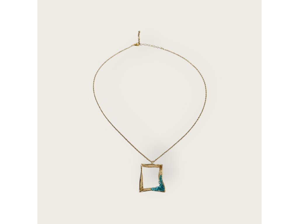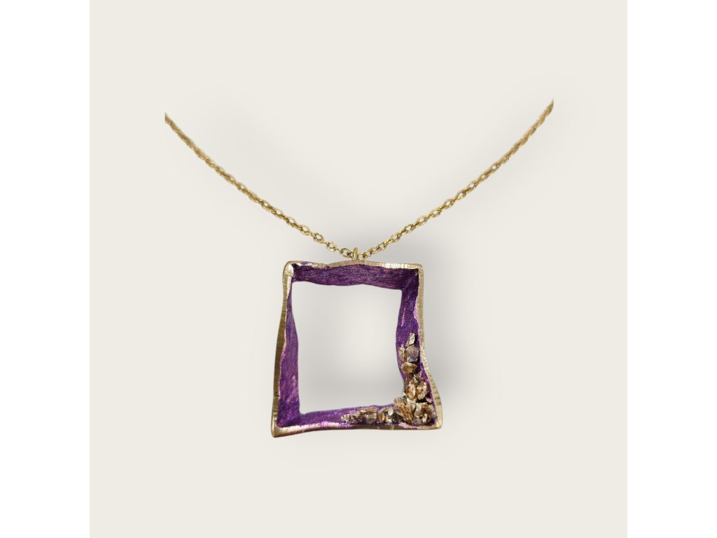 Tento šperk je pečlivě navržen tak, aby zachytil pocit tajemství a fantazie. Jeho nádech elegance je umocněn propracovanými detaily, které připomínají ornamentální rámy starodávných oken. Každý krystal, zasazený do jemného mosazného rámu, působí jako jiskřivý průhled do světa plného fantazie a nekonečných možností. Okouzlující hra světla a barev vytváří iluzi živého obrazu, který mění svůj vzhled v závislosti na úhlu pohledu. Tento šperk je symbolem snění a objevování, který přináší pocit magie do každodenního života.