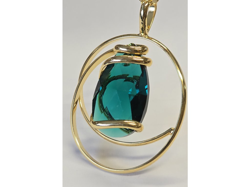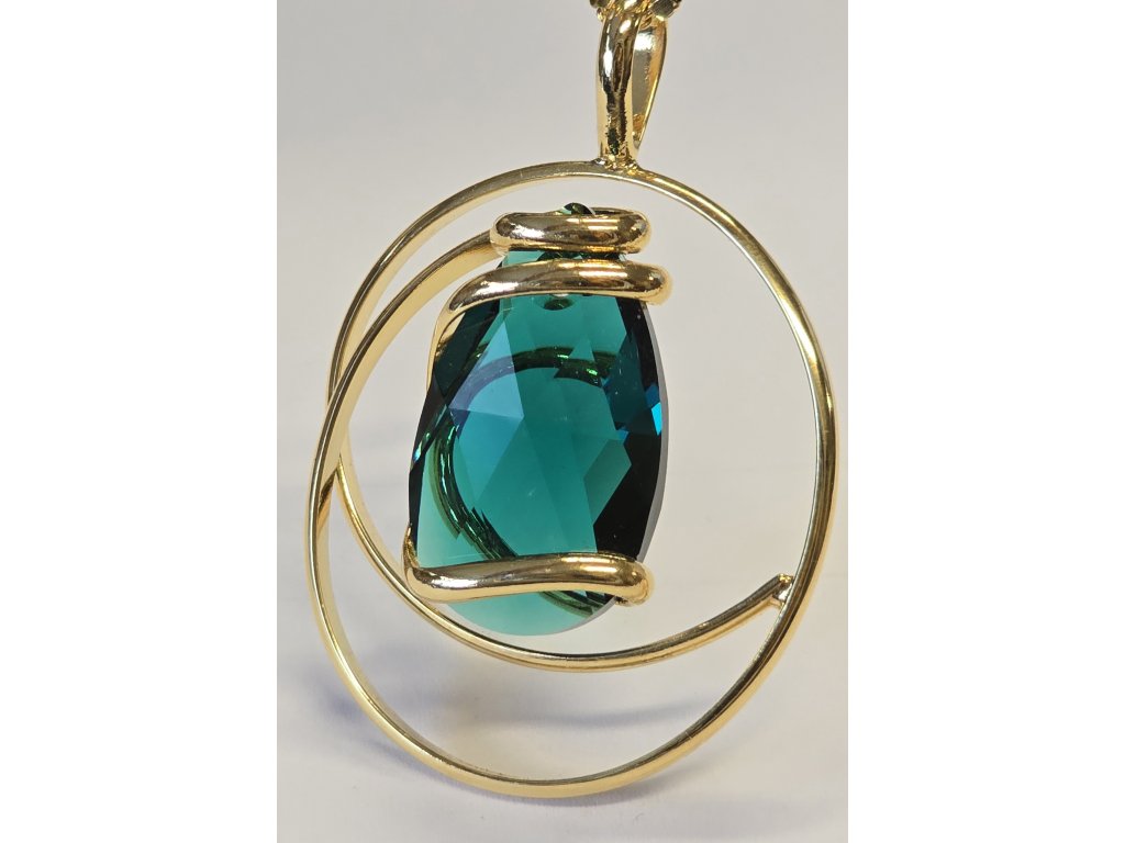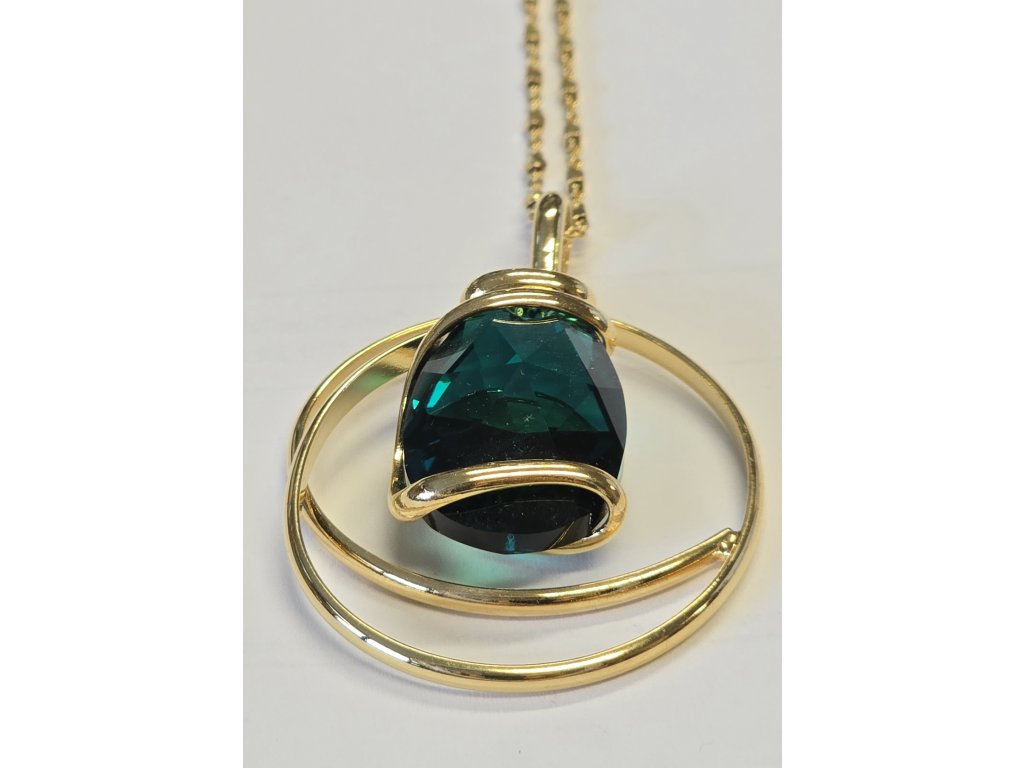 Ručně vyrobený náhrdelník se smaragdovým kamenem Swarovski v povrchové úpravě žlutého zlata.