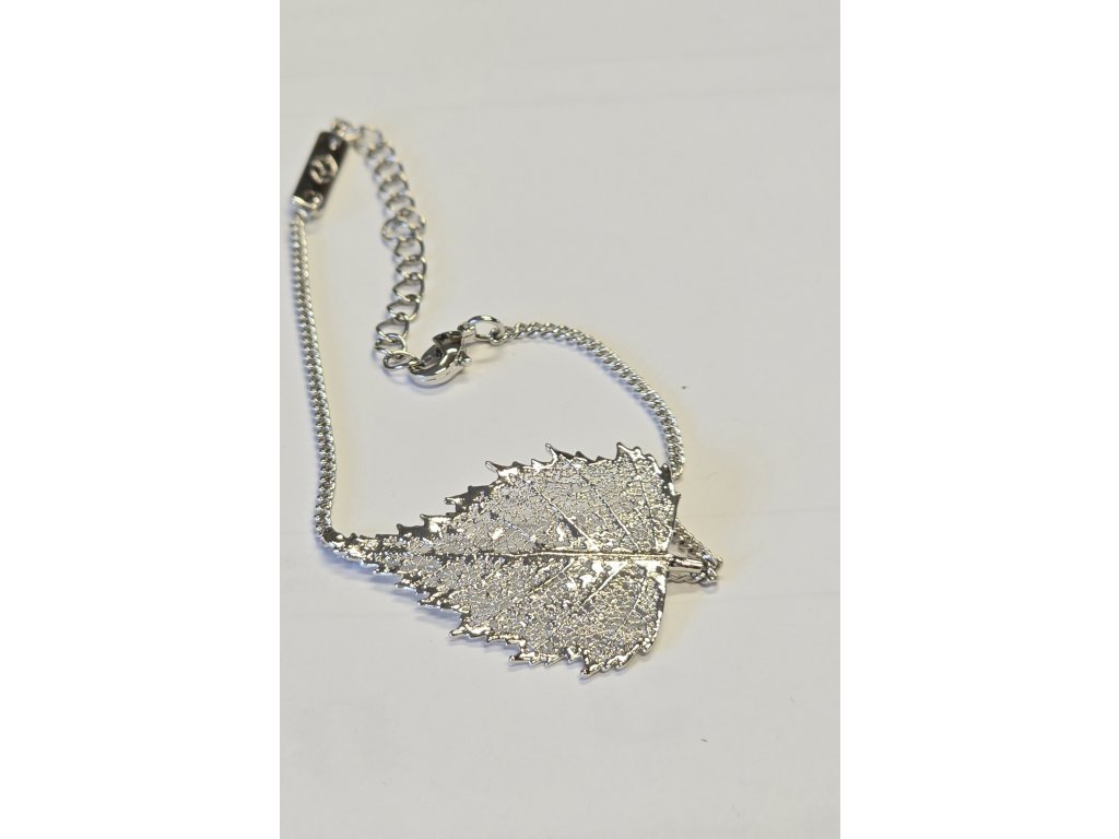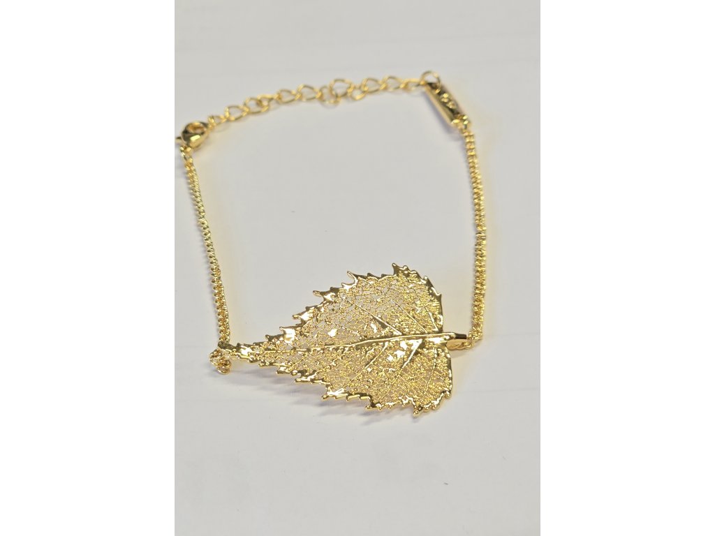 Pozlacený náramek s listem břízy - galvanicky pokovené skutečné listy - v dárkové krabičce s italským a anglickým popisem.