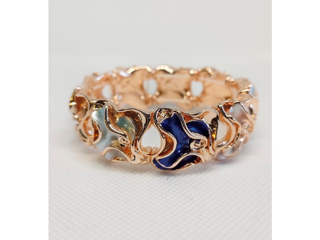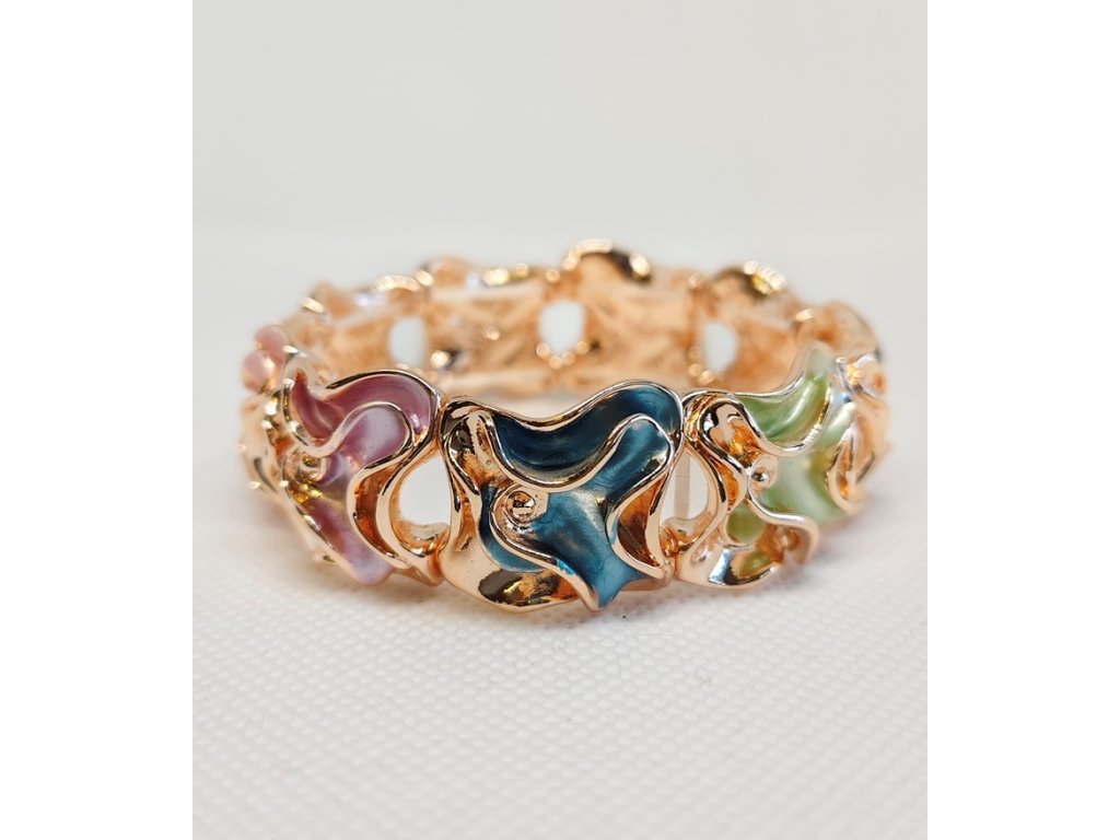 Tento elegantní náramek je vyrobený ze zinkových slitin a zdobený unikátním šperkařským smaltem. Náramek je barevně rhodiovaný.