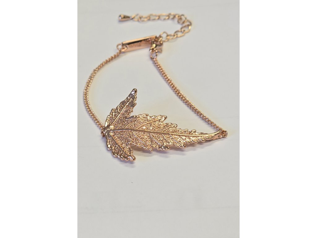 Pozlacený náramek s listem moruše - galvanicky pokovené skutečné listy - v dárkové krabičce s italským a anglickým popisem.
