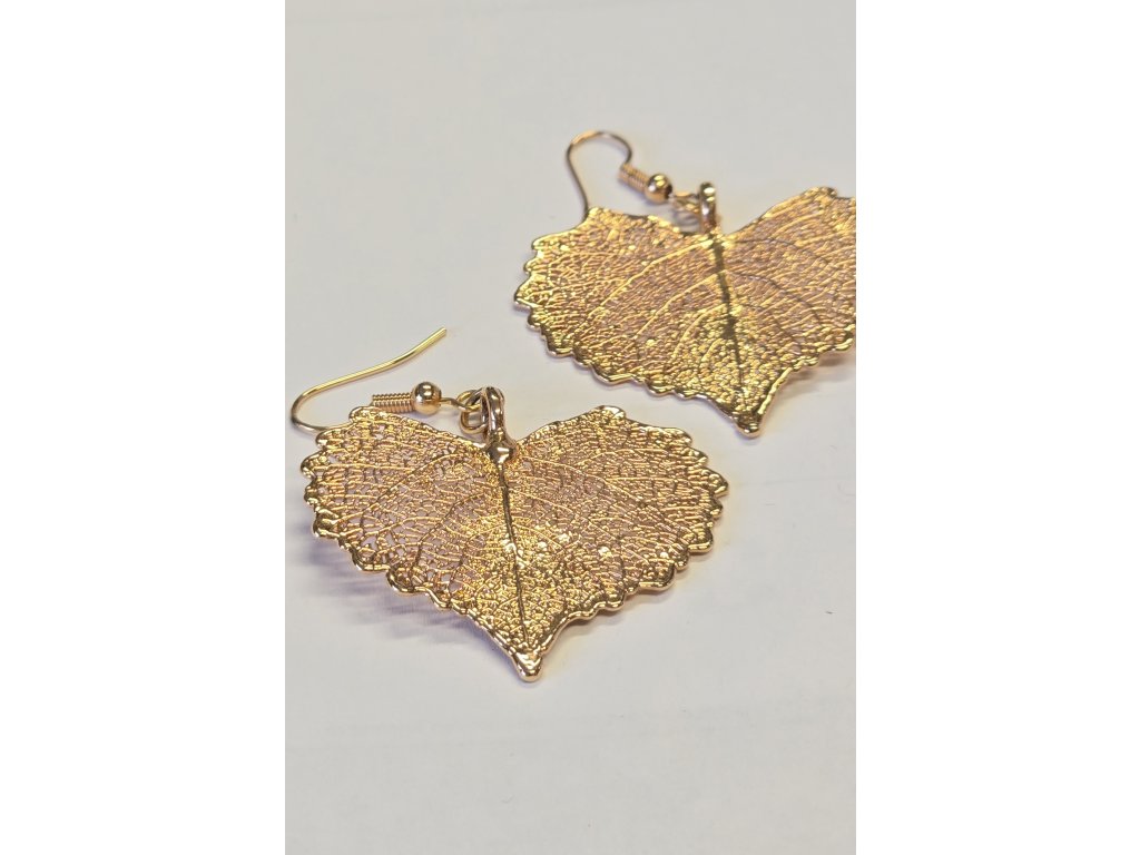Pozlacené náušnice s listem bavlny - galvanicky pokovené skutečné listy - v dárkovém balení s italským popisem.