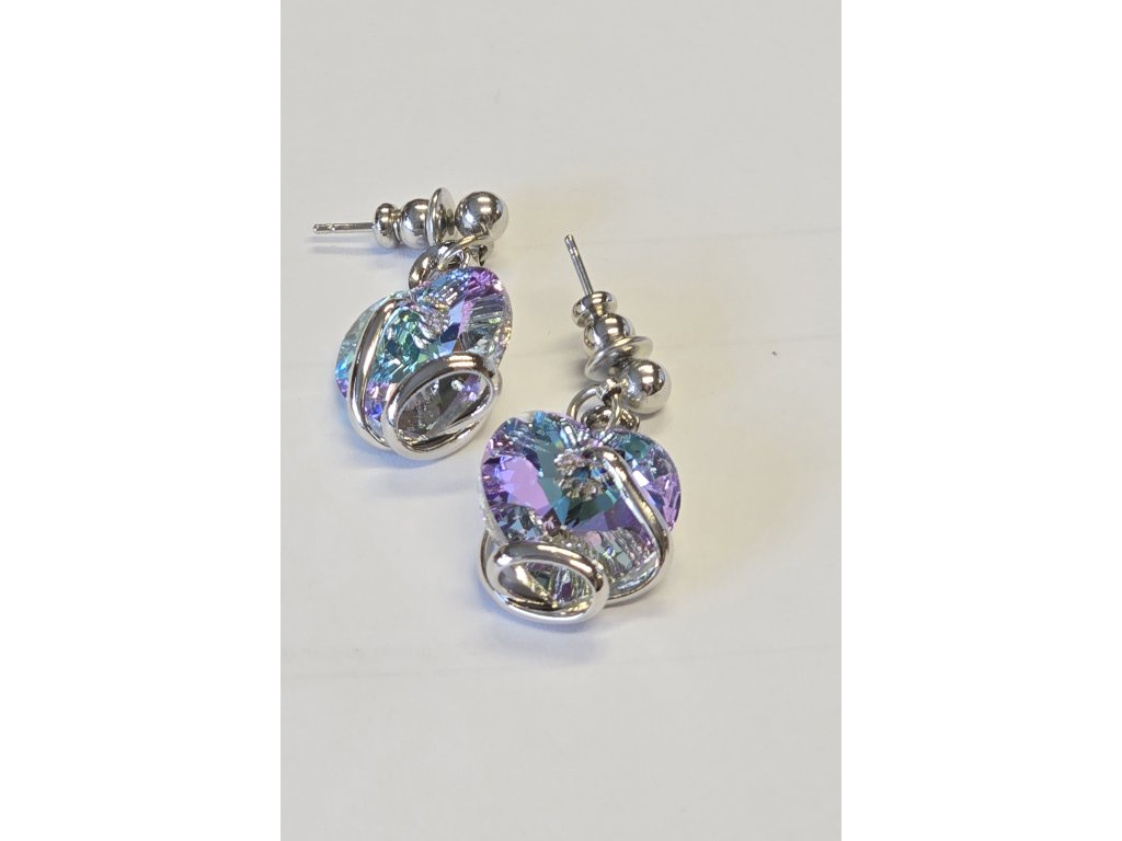 Ručně vyrobené rhodiované náušnice s modrofialovými krystaly Swarovski.
