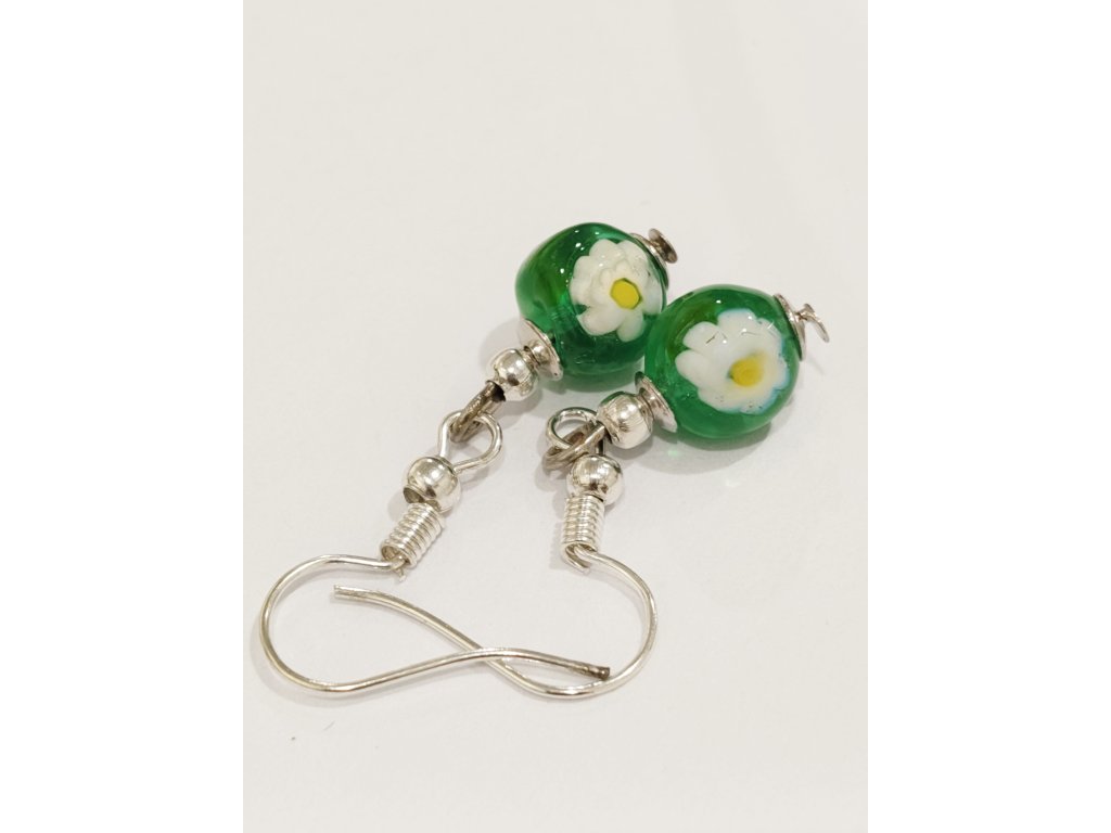 Náušnice Murano Glass s kytičkou - tmavě zelené