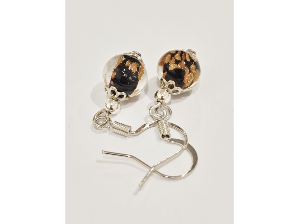 Náušnice Murano Glass se zlatem - černé