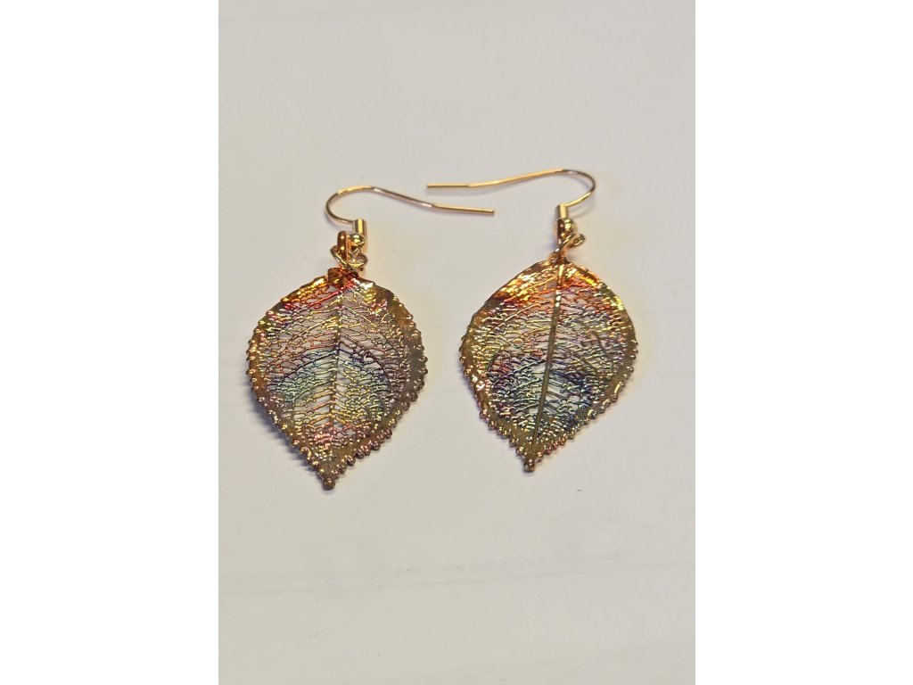 Náušnice s listem růže - galvanicky pokovené skutečné listy - v dárkovém balení s italským popisem.