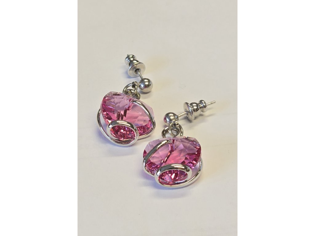 Ručně vyrobené pozlacené náušnice s růžovými krystaly Swarovski.