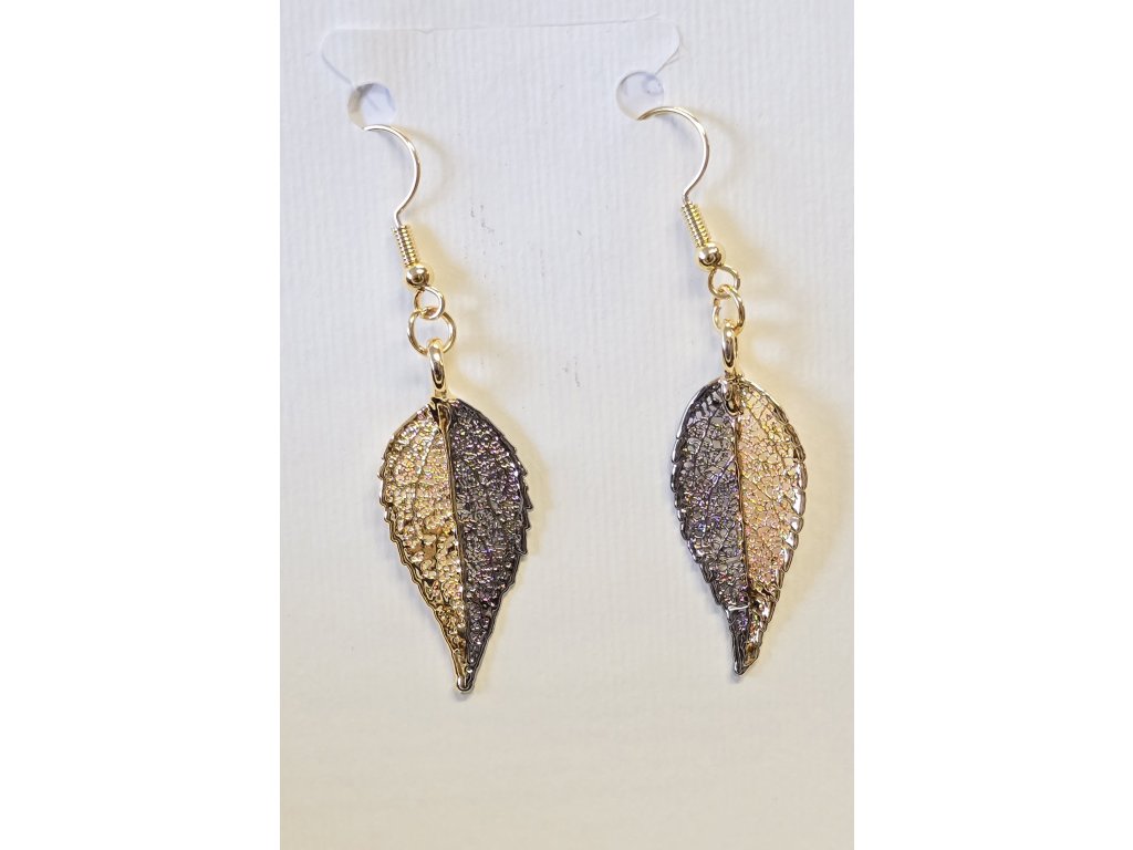 Pozlacené náušnice s listem třešně - galvanicky pokovené skutečné listy - v dárkovém balení s italským popisem.