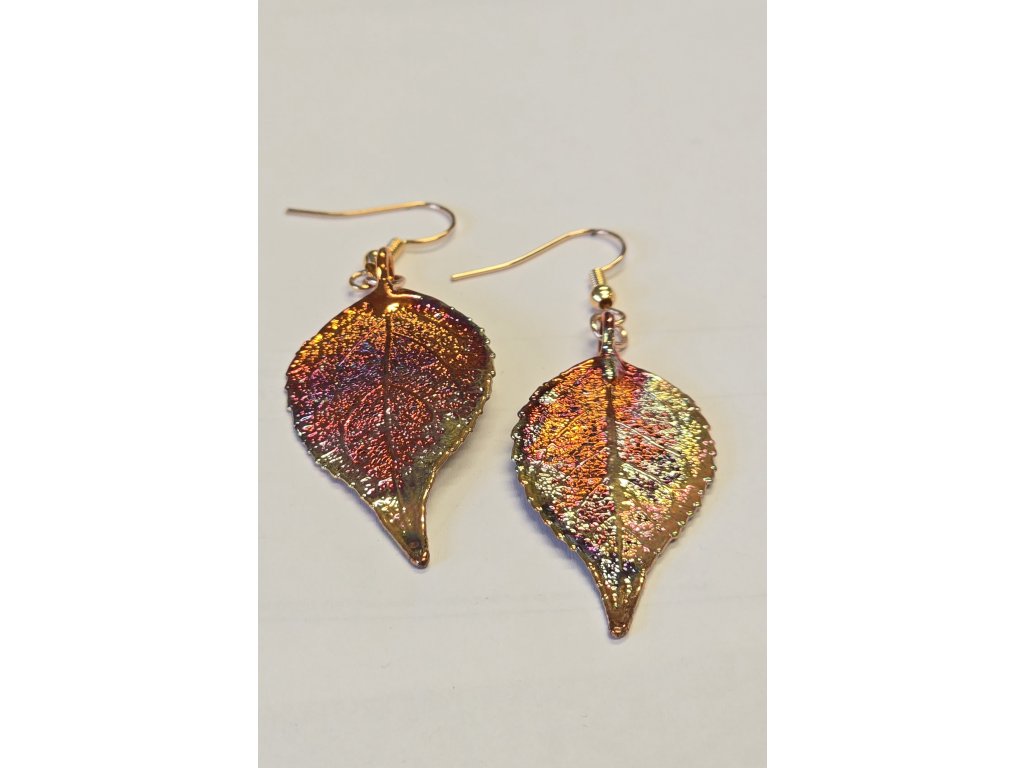 Náušnice s listem třešně - galvanicky pokovené skutečné listy - v dárkovém balení s italským popisem.