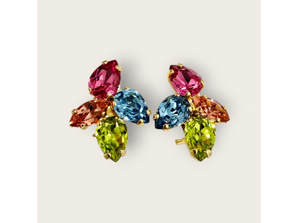 Pozlacené, ručně vyrobené náušnice s krystaly Swarovski.