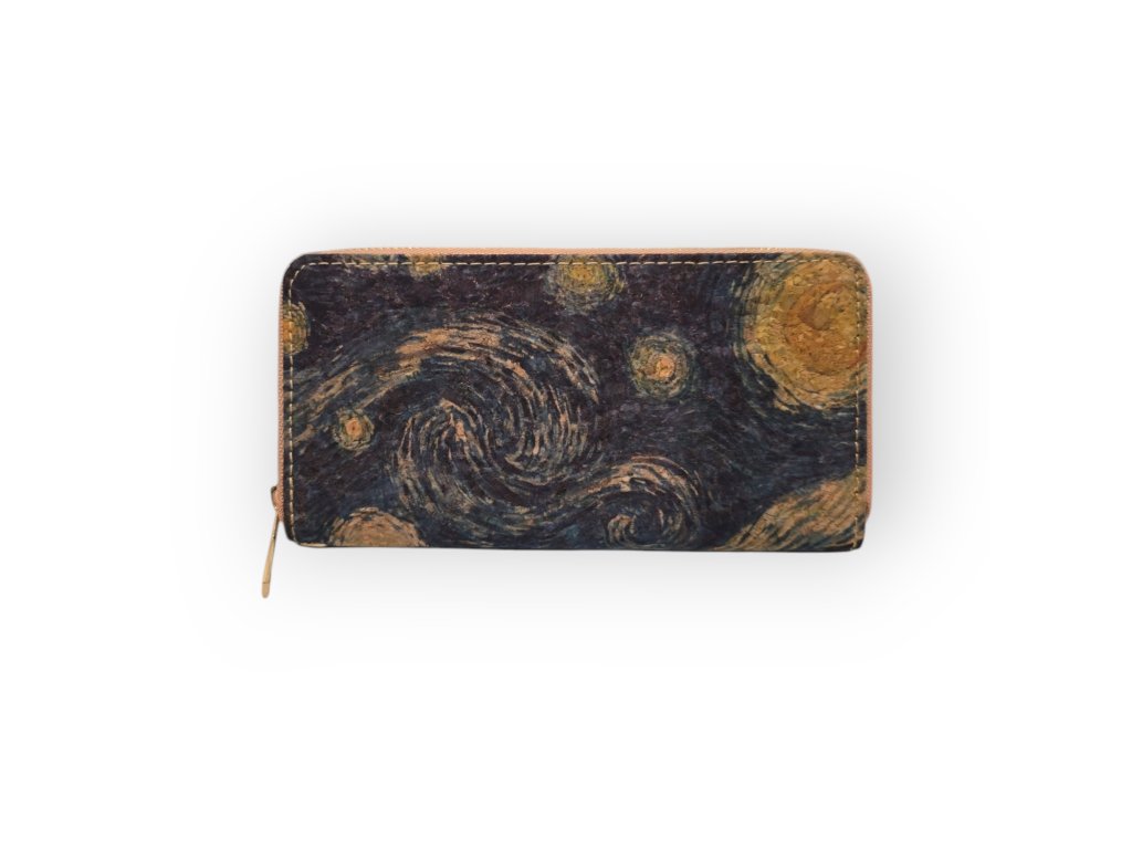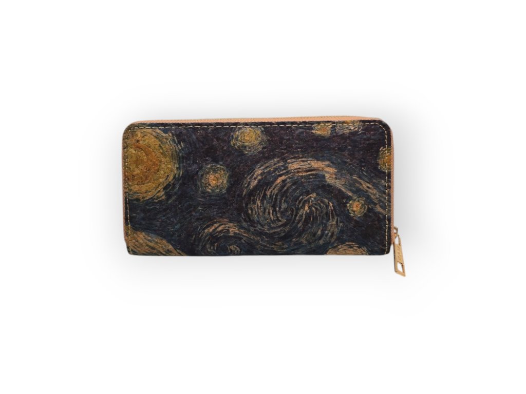 Korková peněženka s motivem Noční oblohy od van Gogha.