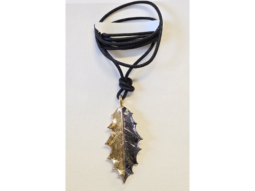 Pozlacený přívěsek s listem cesmíny - galvanicky pokovené skutečné listy - v dárkovém balení s italským popisem.