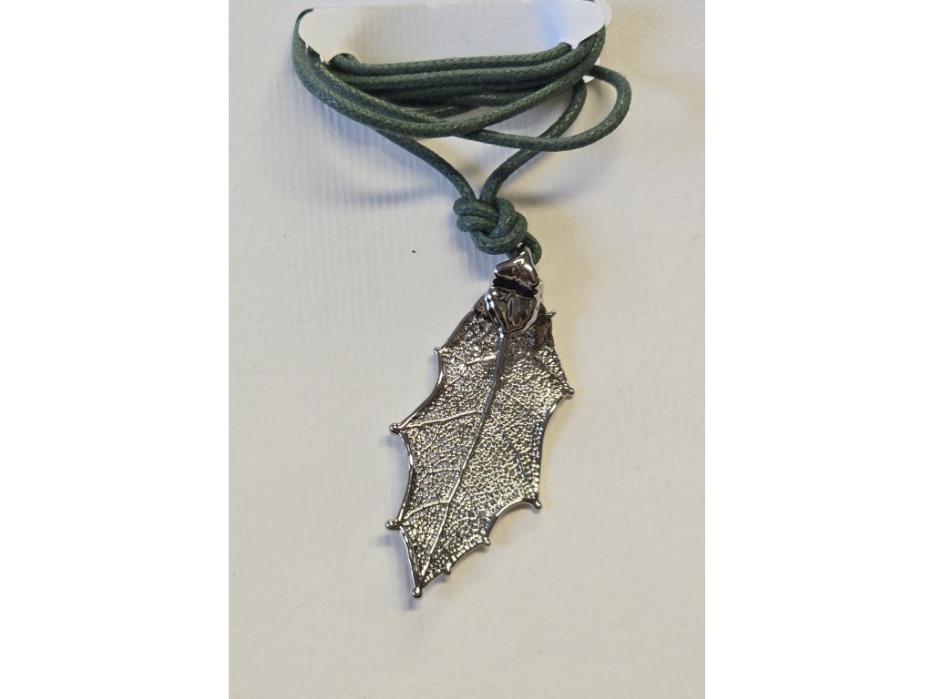 Přívěsek s listem cesmíny - galvanicky pokovené skutečné listy - v dárkovém balení s italským popisem.