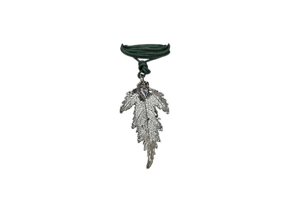 Přívěsek pokovený palladiem z listu Moruše - galvanicky pokovené skutečné listy - v dárkovém balení s italským popisem.