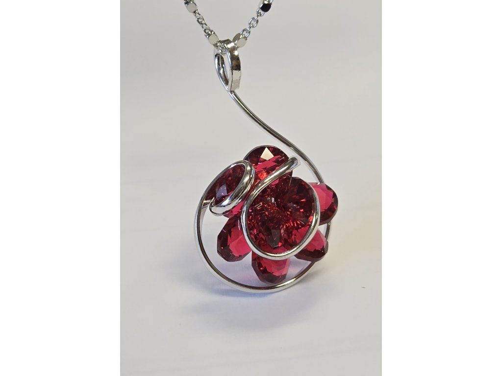 Rhodiovaný náhrdelník s rudými krystaly Swarovski ve tvaru květiny.