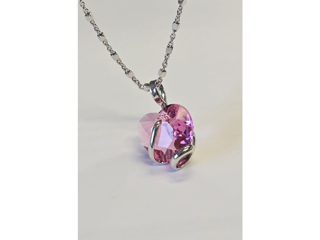 Rhodiovaný náhrdelník ve tvaru srdce s růžovými krystaly Swarovski.